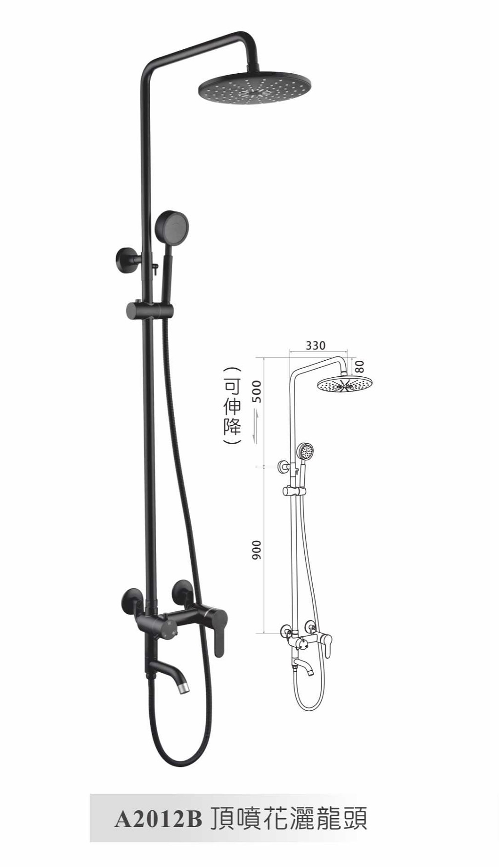 不鏽鋼沐浴花灑龍頭A2012含蓮蓬頭/軟管/加寬腳/滑桿/頂噴整組配件 原色/烤漆黑【實體門市保固】【現貨供應】