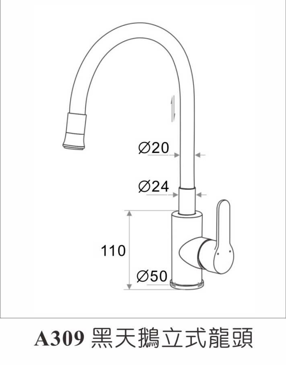 不鏽鋼廚房立式混合龍頭A309含一字三角/軟管整組配件【實體門市保固】【現貨供應】